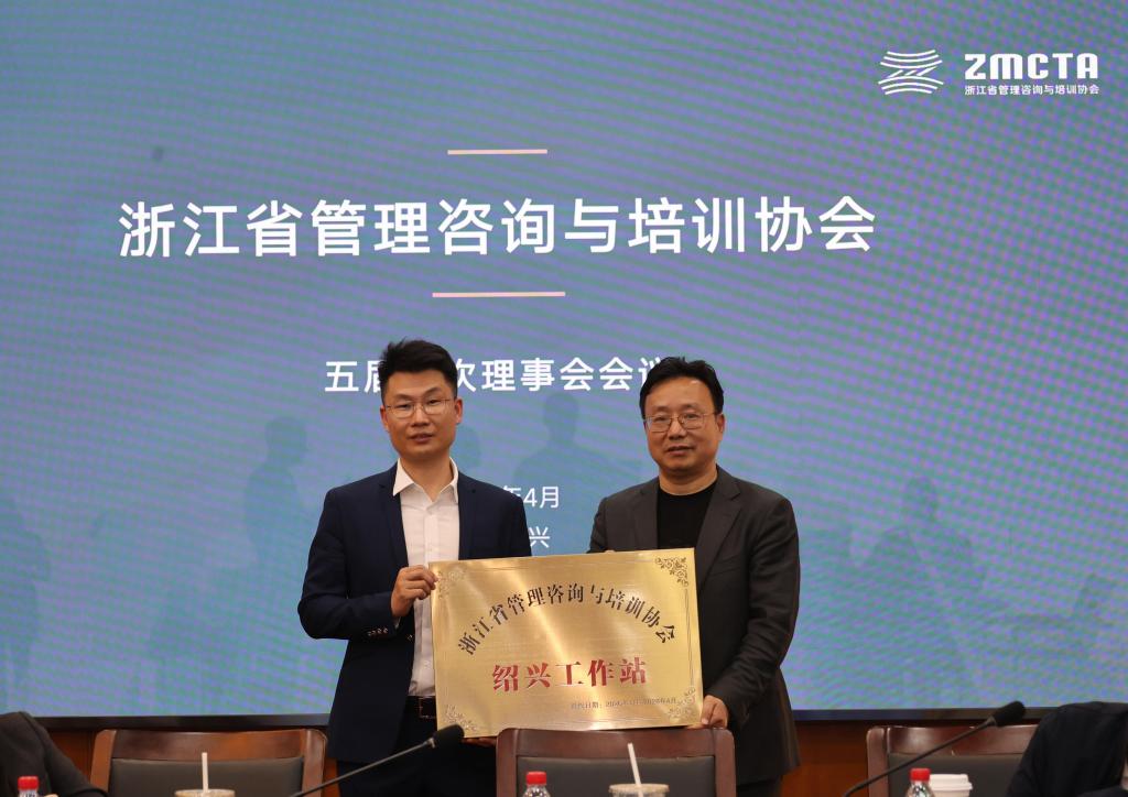 在五届十次理事会议上,研究院王真慧院长对理事工作会议召开表示祝贺,作为本次承办单位,研究院将积极搭建交流平台,助力行业协会赋能企业,推进管理模式与技术创新深度融合,推动AI科技创新与产业需求精准对接。协会陶辉会长为工作站授牌,“浙江省管理咨询与培训协会绍兴工作站”落户浙江工业大学柯桥创新研究院。